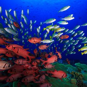 of the region’s coral reefs and mangroves are lost due to extensive coastal development and unsustainable exploitation of marine resources.